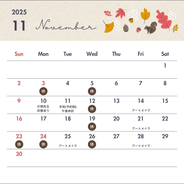 平素より当クリニックに通院頂きありがとうございます。 2025年11月、12月の診療スケジュールのご案内です。 咲皮ふ科クリニック最終診療日は2025年12月28日(日)となっております。 ホームページ・公式LINEから…
