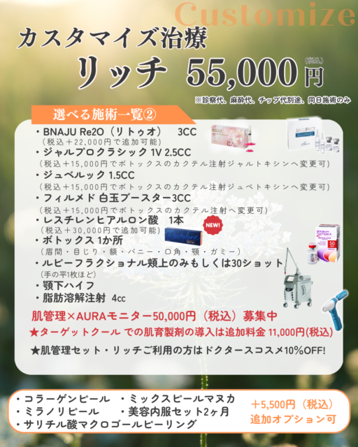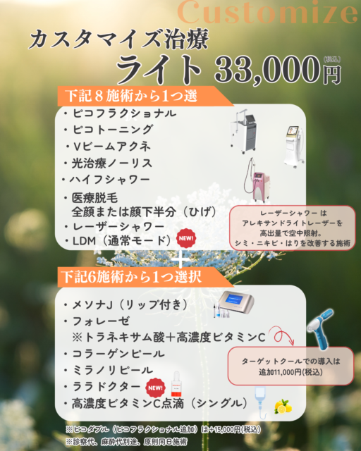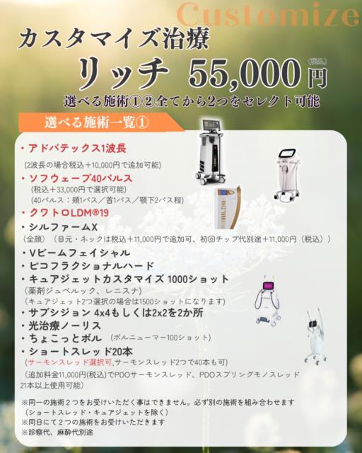 カスタマイズ治療ライト・リッチのご案内❇2026年4月現在|南越谷病院 皮膚科・美容皮膚科・レーザー治療部門|しみ・たるみ・あざ治療